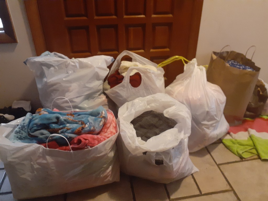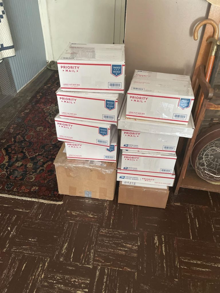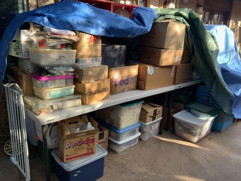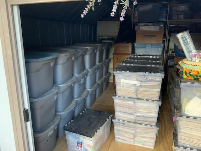 Below are some pictures received from Charlene at Paraclete, in Arizona, showing us some of the tubs of donations she has received from Foothills and others, and the amount of mailings that go out to various recipients.